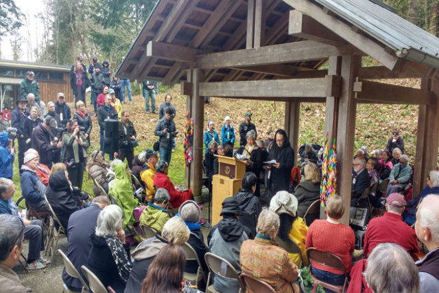 Unlike 15 years ago, Clarence Moriwaki, president of the Bainbridge Island Japanese American Community, did not hear much crows’ calls last Thursday. Still, on a late sunny morning, hundreds of friends joined the annual ceremony at the Bainbridge Island Japanese American Exclusion Memorial and shared a moment of one of the most important lessons that the U.S. citizens have learned.