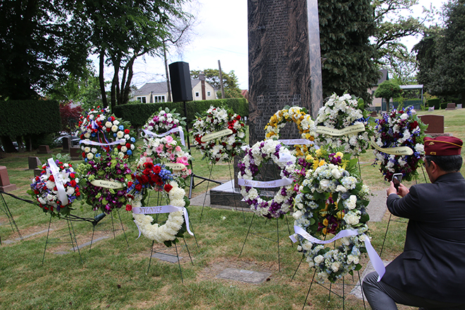 Flowers-the-Nisei-war-memorial-monument