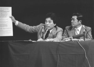 Not just in a sense. We were graduating from college. I was born in ’51. We were the generation after camp. You had San Francisco State in 1969 start Asian American Studies, the discovery of No-No Boy in ’72, CARP (the Combined Asian American Resources Project), publication of Aiiieeeee!! (an anthology of Asian American writing), which is being republished this fall by UW Press, by the way.