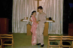 Mike: The military wouldn’t let us travel together because they didn’t approve of our marriage. She had to go on commercial flights and I went military. The military took me as far as San Francisco; then I was on my own. We didn’t have any money to get me from San Francisco to New York, so we had to borrow it from her brother.