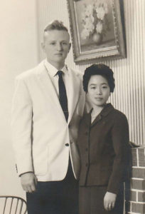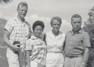 Born and raised in the Waseda district of Tokyo, Sadako was working in Ueno. At that time, her monthly salary was about 3500 yen. An acquaintance of Sadako’s came to her, surprised at how low her salary was, and introduced her to a job as a waitress for the base cafeteria, claiming, “at the base, you can make more than 10,000 yen a month!” At that time in 1956, many Japanese people were working on the base. It was during that time when she got to know her husband, Alan. “Although at first, I thought, ‘really? A blonde?'” laughed Sadako.