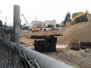 Readers driving on Rainier Avenue South will notice two changes on the lots adjoining the Japanese Cultural and Community Center of Washington. The first is that the West Coast Printing building, on the block south of JCCCW, has been demolished and removed to make room for new development. This is good, for the old vacant brick building, with its broken upstairs windows and adjoining overgrown vacant lot, had become an eyesore and a homeless hangout (photo, NAP, “A Moment in Repose,” Mar. 2018). Moreover, with each old, large Seattle brick building like this that comes down or is reinforced, there is one less place that people will likely be killed by falling floors and bricks in the next earthquake.