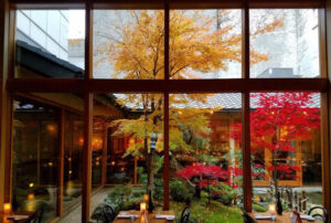Courtyard featuring a tsukubai outside the dining room Momiji Instagram
