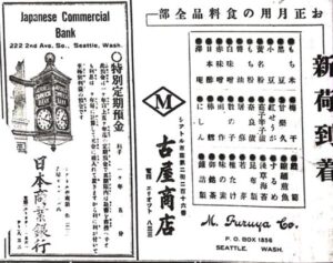 As mentioned in the last chapter, Furuya Shoten, founded by Masajiro Furuya, was a large department store selling Japanese groceries, furniture, daily home goods, works of art, books, shoes, etc. My grandmother had a receipt from 1934 for a futon she purchased from Furuya Shoten when she was running a barbershop in Seattle. Furuya expanded his business to the founding of the Toyo Trading Company and the Japanese Commercial Bank (later renamed Pacific Commercial Bank). He supported the Japanese community in Seattle.