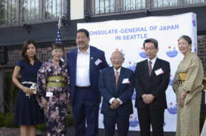 On Thursday, July 21, the Consul General of Japan in Seattle hosted a celebration to commemorate the “North American Post” and “Soy Source” 120th year and 30th year anniversaries, respectively. While the Post’s actual anniversary is not until September, the outdoor event was scheduled for favorable midsummer weather with 100 guests in attendance.