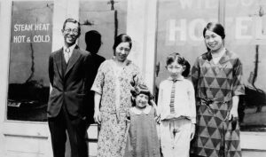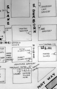 Not long after settling into life in Seattle, the Suzukis bought the business rights to the Wilson Hotel, located on the north side of South Dearborn Street between Fifth and Sixth Avenues South. This was in 1922, about three years after arriving in the U.S. The location also happens to be right in the middle of the south side of the present Uwajimaya parking lot. This hotel provided the Suzuki family, now with two additional children, Koichi Warren, and Toyoko Lillian, a comfortable living until they were placed in a concentration camp in early 1942 by the U.S. government when World War II started. So, it helped the Suzukis for about 20 years.