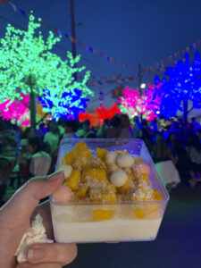 Arriving past 7 p.m. to avoid the crowd, we find the sun slowly starting to set and the golden hour peeking through the clouds. Waiting in line, we see advertisements for food tents whose aromas are causing stomachs to grumble. Once inside, a wave of laughter from friends and family, live music from the main stage, and the beautiful smell of stinky tofu all reach one’s senses.