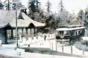 Pagoda in its day, along the park’s streetcar line. Streetcar service ended in 1938; bus service in 1962.