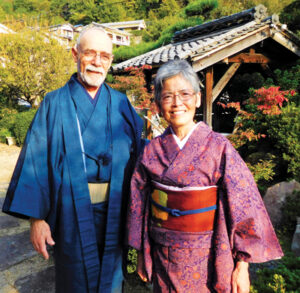 ▲Dick and me dressed in kimonos on our second visit with my relatives (2014).