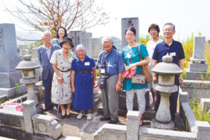 ▲Uncle Bob and Aunt Carol with Hiraki family members at the cemetery, Habu (2016). Photo: CO