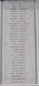 The stadium, built in 1947, and its wall, which followed in 1950, commemorate Seattle’s approximately 770 former students who died in WWII in 24 panels. There are many Nisei among them, examples of which appear at right.