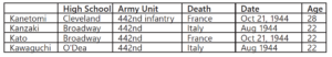 From their biographies on the wall at the Nisei Veterans Hall and elsewhere, the broad strokes of their short lives can be summarized in a brief table.