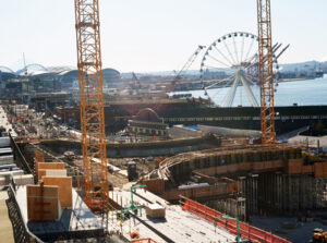 A fourth photo to wrap up this column is that of the construction chaos just downslope of the market. While it is hard to discern what is in the scene here, it is the beginnings of the broad pedestrian overpass connecting the market to the waterfront. Undoubtedly, we will hear more about this — possibly from native-daughter Joy Shigaki(紫垣喜衣), who is elbow-deep in it (napost.com, Sept. 2022) — in the years to come.