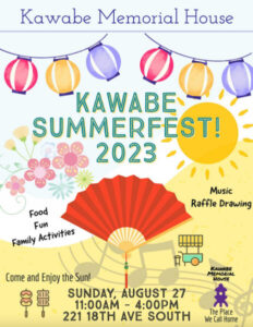 ▪️Summerfest – Sun, Aug 25, 11 a.m.-3 p.m., Kawabe Memorial House, 221 –18th Ave S, Seattle. https://kawabehouse.org/ or see Facebook at: https://www.facebook.com/events/1594654537726229/?ref=newsfeed.