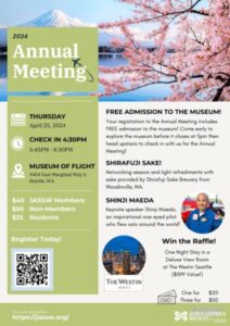 ▪️ The Museum of Flight, JASSW Annual Meeting 2024: Soaring Towards the Future, April 25, 5:30-8:30 pm. Your registration to the Annual Meeting includes FREE admission to the museum before it closes at 5pm!