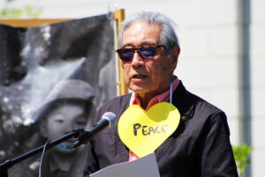 ▲Islander Joe Okimoto, a former World War II incarceree, speaks during the “Day of Exile” event.