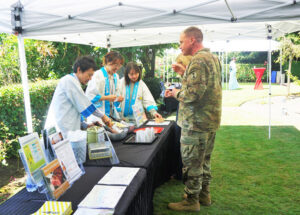 ◀︎ Hyogo Prefecture, Japan, group serving four different sake samplings to U.S. Army guests during the U.S. Army-Japan Alliance reception. Located in the garden of the Consul General of Japan in Seattle’s official residence.