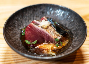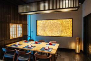 Depending on the night, guests might savor slow-cooked wagyu with lotus root or a dish of golden eye snapper in dashi with yuzu and snow peas or a course of soft cod roe tofu, sweet miso, and shredded ginger. The multi-course, set menu will be approximately $185 per person, noting a special evening of elegant artistry and premium ingredients in a refined and polished dining experience.