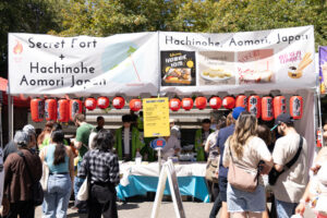 The Secret Fort and Hachinohe food booth featured two lines — one to place an order and one to pick up food. People constantly lined up to try the Hachinohe products. Photo credit: Emilie Sheng.
