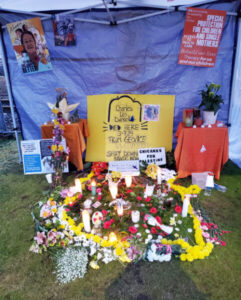The altar dedicated to Charles Leo Daniel outside the Northwest Detention Center. ▶︎