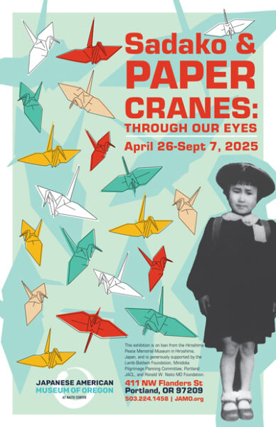 “Many people in the U. S. know about Sadako Sasaki from several popular books that have been written about her,” said Hanako Wakatsuki-Chong, executive director of the Japanese American Museum of Oregon. “Young people today may be able to relate to her story and struggles.In this exhibition, we want to facilitate the connections between her story, Northwest Nikkei (Japanese American) artists and local young people to help foster a wider discussion of the difficult issues raised and the need for peace moving forward.”