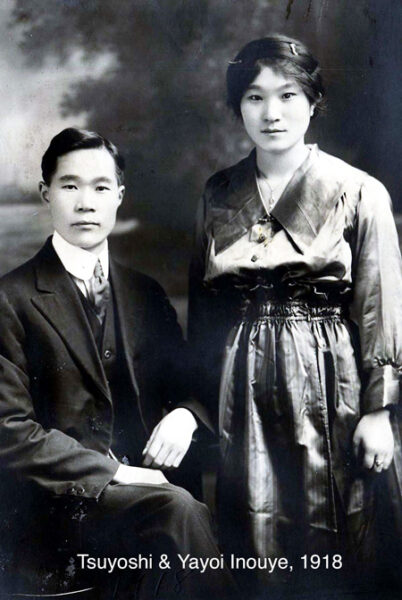 Once he had established himself financially, Inouye began to think about starting a family. His family in Japan arranged for an omiai (arranged marriage) between picture bride Yayoi Iseka and Inouye. Their marriage was faciliated by their two families and a baishakunin (go-between). In Japan, Iseka’s name was recorded in the Inouye koseki-toho (family history record) which lists all family births and marriages and is filed with the town clerk. In this way, though no ceremony was performed, Iseka was already a bride before leaving Japan. Though she had never met Inouye, she dutifully traveled to Kobe, Japan, and boarded a ship called the S.S. Kashima Maru, arriving in Seattle two and a half weeks later. She turned 18 in the middle of the Pacific Ocean, which allowed her to legally enter the United States in 1918.