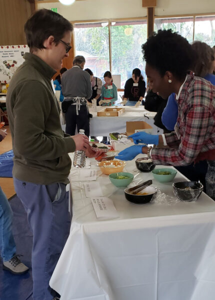 Volunteers serving guests a variety of toppings for their mochi. Photo credit: Barbara Mizoguchi.