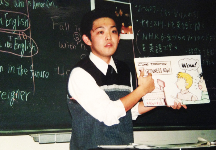 Uehara teaching English in a school; after 2001. Photo courtesy: Tomoyuki Uehara.