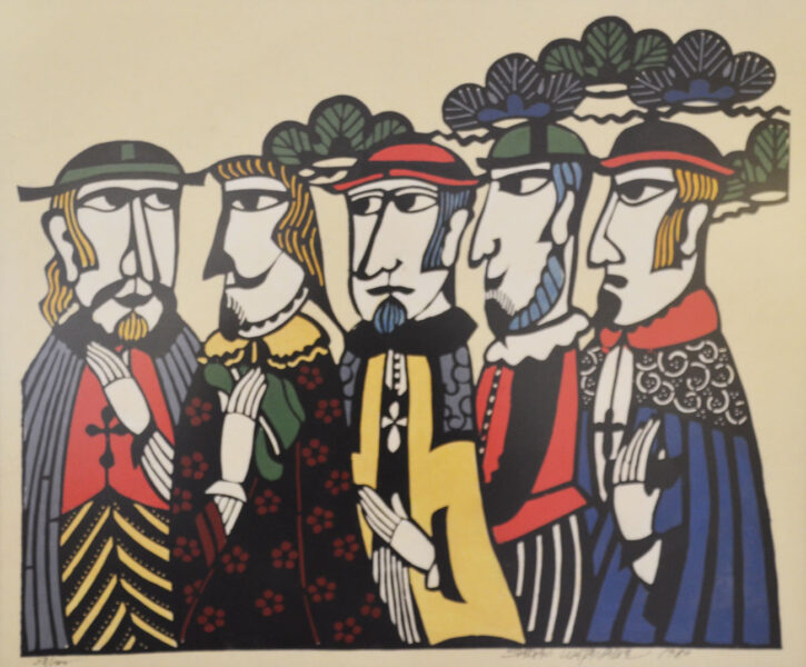 Prints from Sadao Watanabe (1913-1996), an artist who dedicated his career to biblical themes, accompanied the relics.