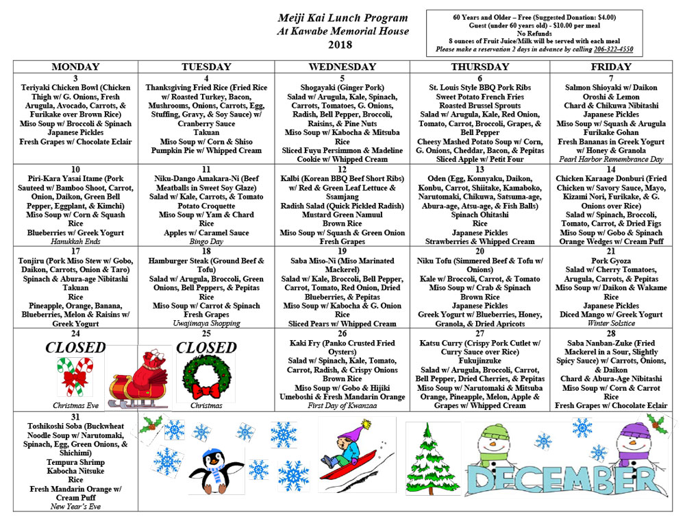 Meiji Kai Lunch Program at Kawaba Memorial House – December 2018