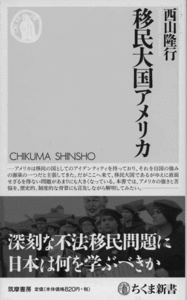 『移民大国アメリカ』(西山隆行著、ちくま新書)(写真)は、トランプがなぜ共和党の大統領候補者の中で最も支持を得るようになったのか、その背景にあるアメリカの不法移民問題に迫る。建国以来、移民の国としての誇りを持ち続けてきたアメリカに、今何が起きているのか。中東政策に大きな影響を及ぼしているユダヤ系ロビーのほか、キューバ系、メキシコ系から日系、中国系まで、アメリカ政治にさまざまな影響を与えているエスニック・ロビイングの実態を紹介している。