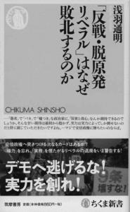 『「反戦・脱原発リベラル」はなぜ敗北するのか』(浅羽通明著、ちくま新書)(写真)は、「若者を巻き込んだ楽しくかっこいい社会運動」を礼賛したメディアと知識人たちの言動について、リベラル勢力を劣化させるものだ、と実名をあげて批判していく。3・11 以降、脱原発や反戦を求めたこれまでにないスタイルのデモが多くの参加者を集め、その動きに賛同する知識人や、これらの動きを大きく好意的に報道するメディアがあった。しかし評論家である著者は、デモの目的と手段をいつの間にかすり替えるようなリベラル知識人・文化人の言説に対し、本来の目的だったはずの反戦・脱原発をどれだけ本気で考えているのか、本来の目的のためにデモに参加した人たちをバカにした話ではないか、と厳しく批判している。