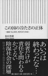 生活保護受給者へのバッシングに象徴されるように、弱者が、自分より弱い立場の人間を攻撃するような空気。『この国の冷たさの正体/一億総「自己責任」時代を生き抜く』(和田秀樹著、朝日新書)(写真)は、なぜ日本人、日本社会はここまで他人に冷たくなったのか、助けを求められない社会になったのかを考える。