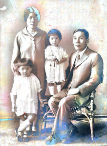 1925年頃、宮崎庄兵衛と妻ヒチ、二人の子どもたち