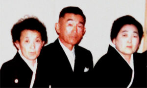 左からサヱ子、和子の亭主(盟一)と和子、筆者の結婚式の時、1979 年